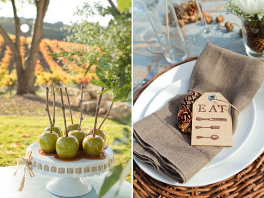 Sugar and Charm è uno di quei blog in cui l'autore sceglie degli esempi di feste eleganti e di piccoli consigli, presentando i negozi in cui potete acquistare gli articoli per addobbare le vostre feste. Trattandosi di un blog americano e trovandosi l'autrice Eden a LA, la maggior parte degli oggetti risulta troppo distante per il nostro shopping. Ve lo consiglio comunque per la ricca galleria di idee e di belle foto provenienti da ogni dove. Qui sotto vi presento uno dei rari esempi in cui è lei stessa l'autrice dell'articolo – la sua festa autunnale che prepara ogni anno per i propri amici. Lei l'ha chiamato “Il picnic delle mele”.